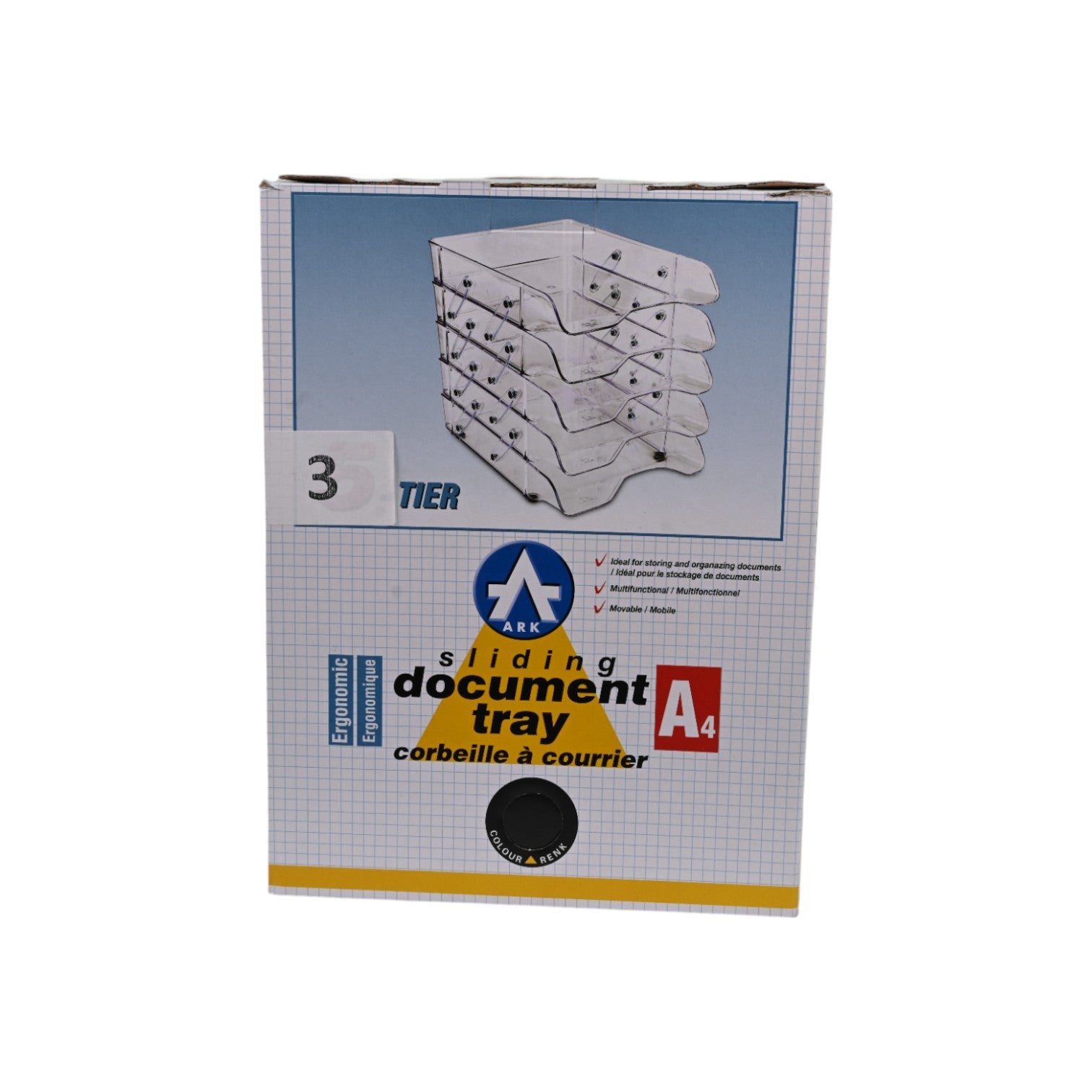 Organize your workspace in style with the ARK A4 Black Sliding Document Tray. Featuring a sleek black finish and 3 smooth-sliding tiers.