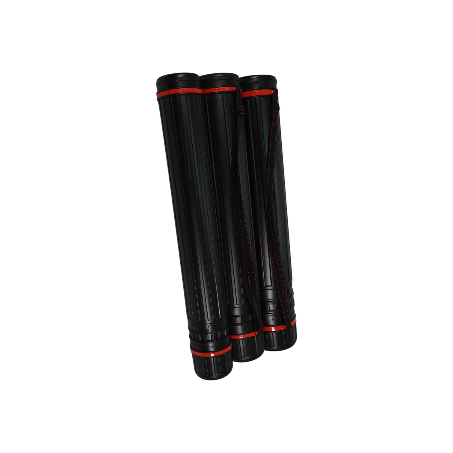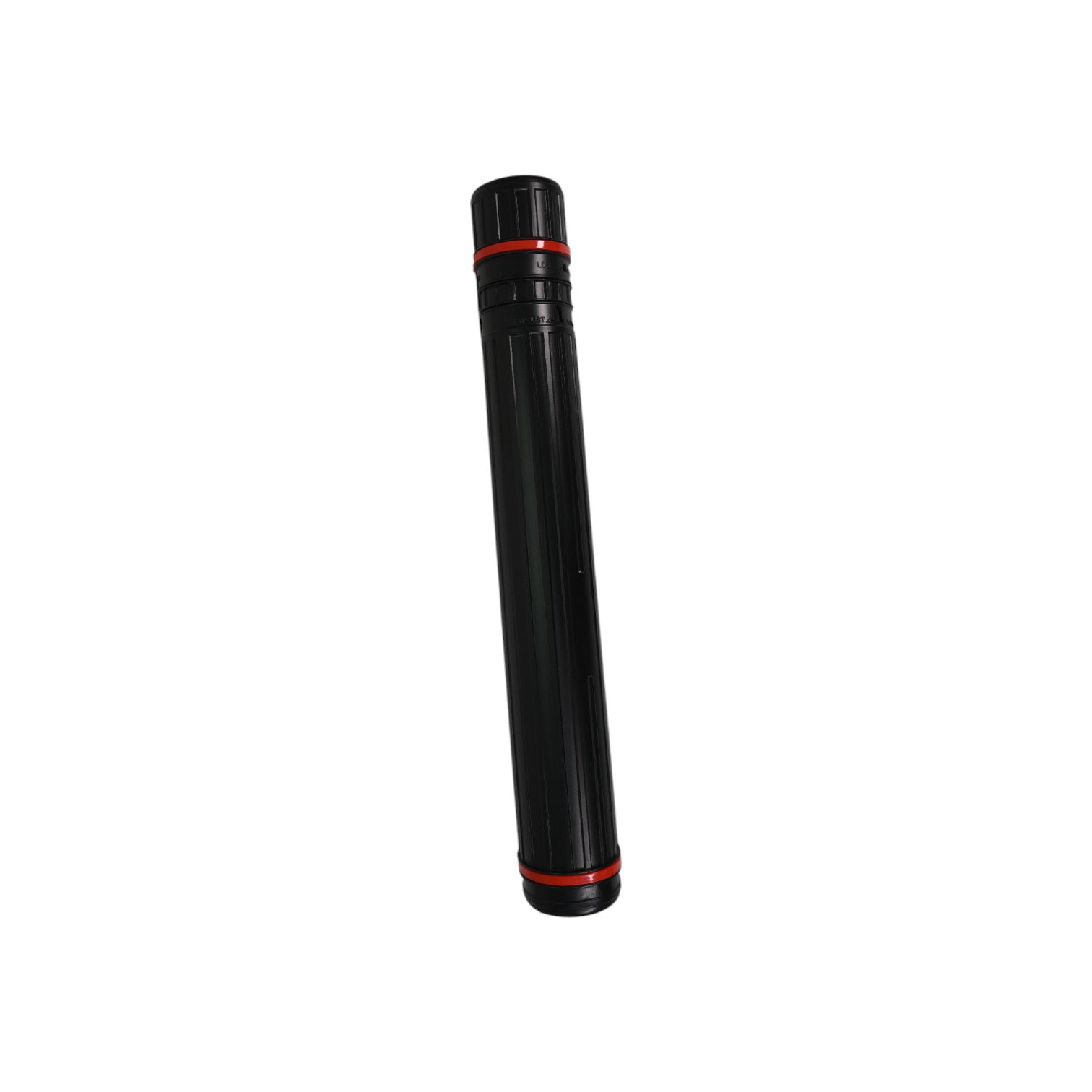 Secure and transport your drawings, posters, or blueprints with this adjustable black document tube. Features a twist-lock cap, red detailing, and a carry strap for easy handling.