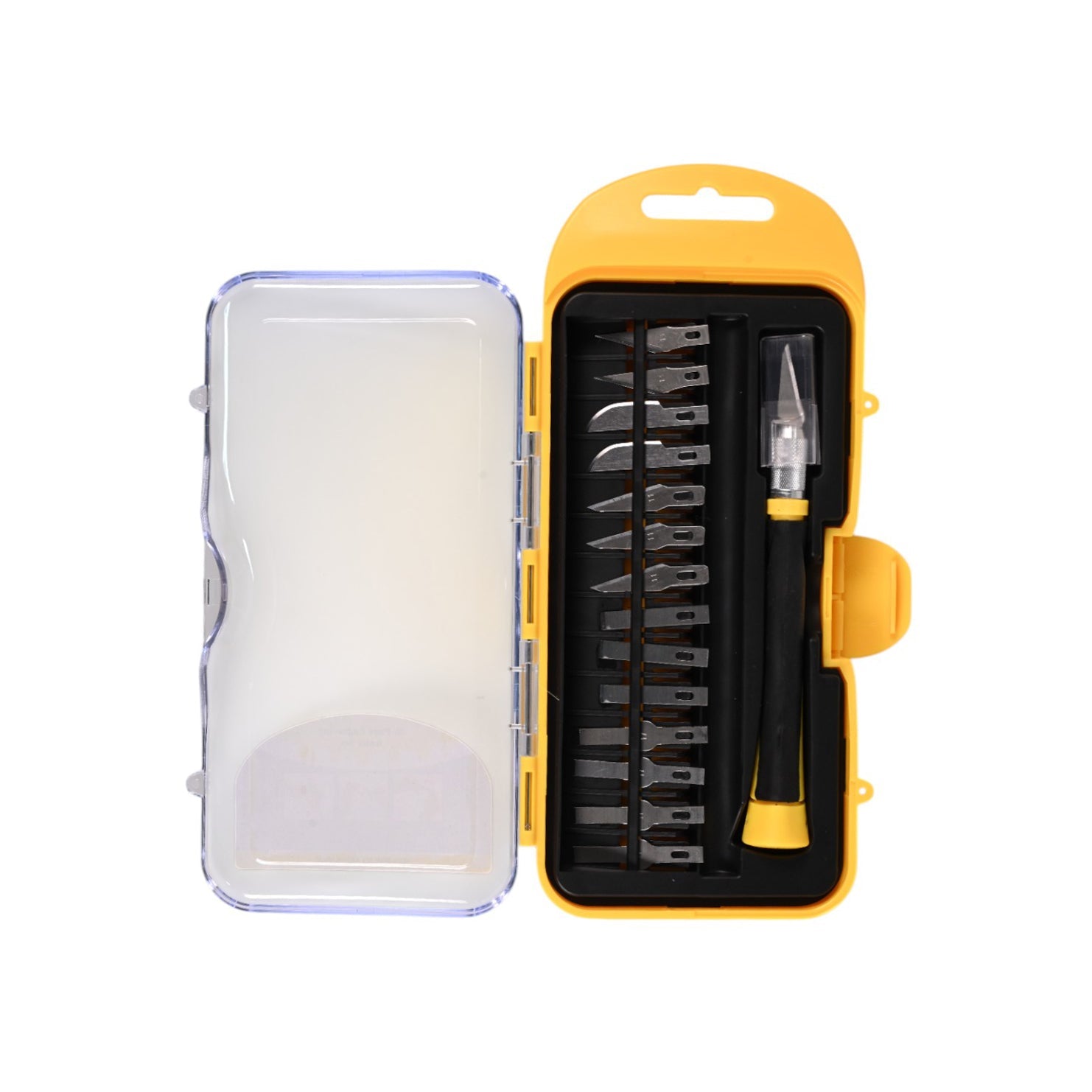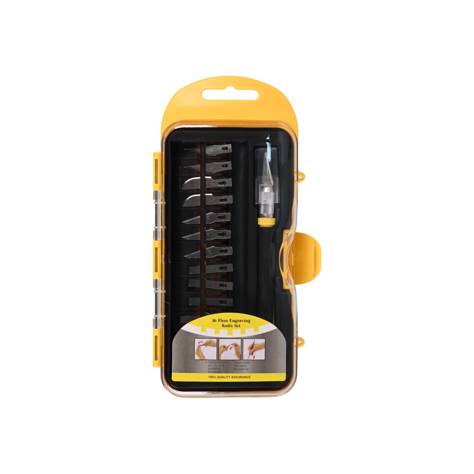 This 16-piece precision craft knife set includes a comfortable grip handle and an assortment of sharp interchangeable blades for detailed cutting, trimming, and carving.