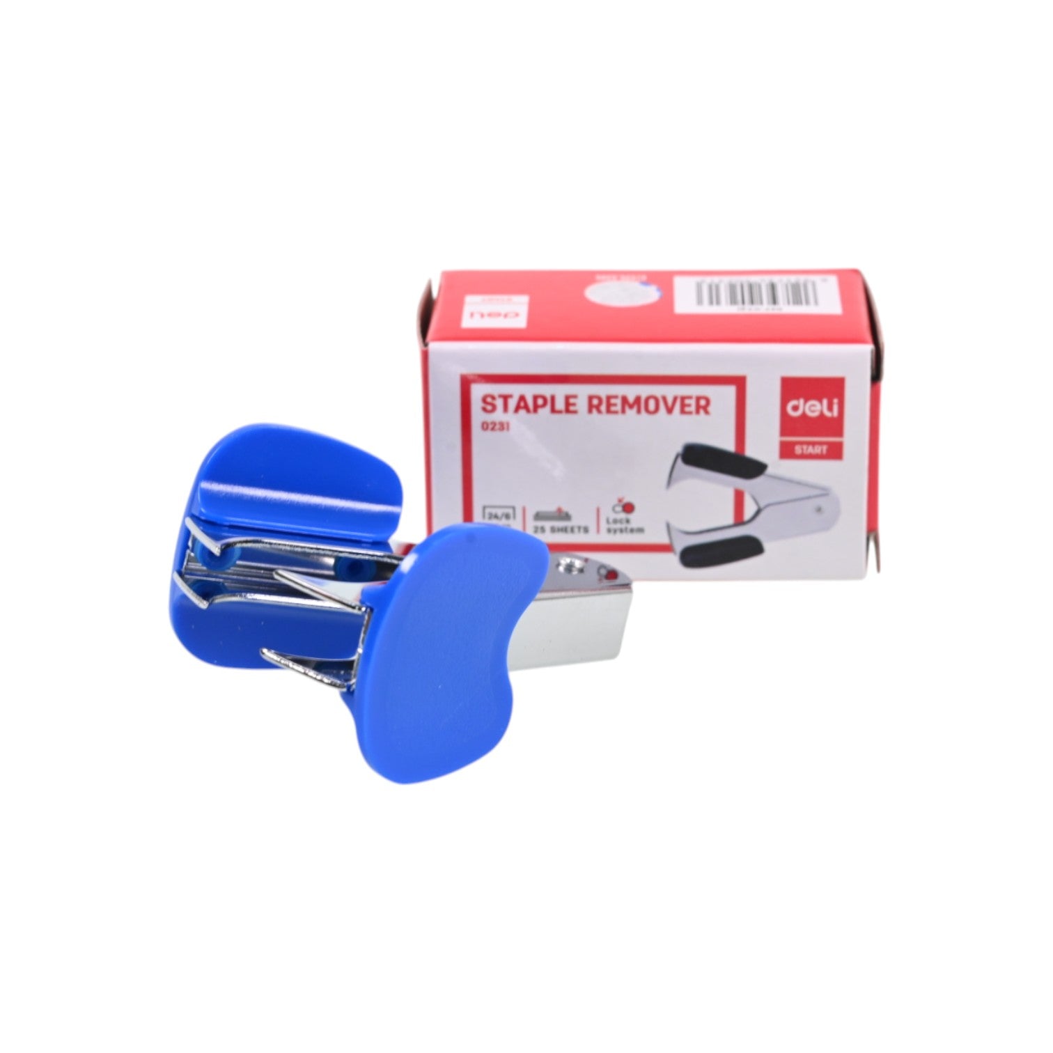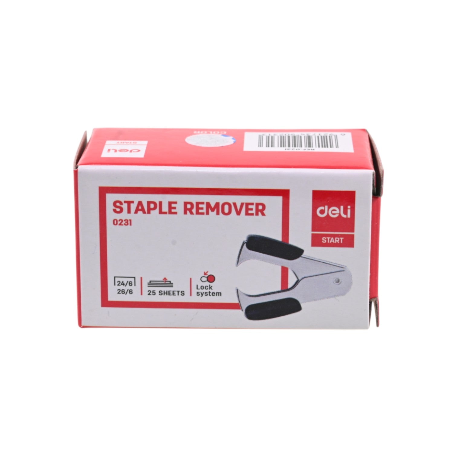 It offers safe and easy removal of 24/6 and 26/6 staples without tearing paper. Designed with a comfort grip and lock system, it removes staples from up to 25 sheets in a single motion.