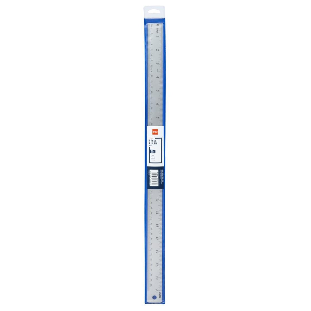 Deli Steel Ruler 50cm is a sturdy, high-precision ruler made of steel, perfect for accurate measuring and drawing over longer distances in technical, engineering, and artistic work.