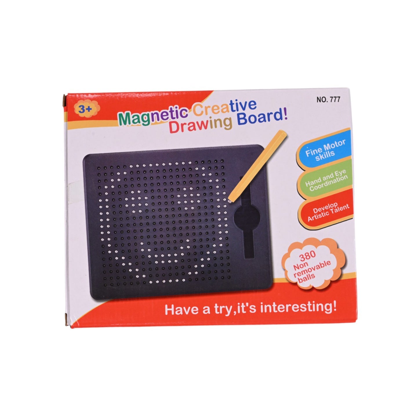 Featuring 380 non-removable magnetic balls and a magnetic stylus, this board allows little ones to draw shapes, letters, or patterns by lifting the balls to the surface. A fun, mess-free activity that helps develop fine motor skills, hand-eye coordination, and early artistic talent.