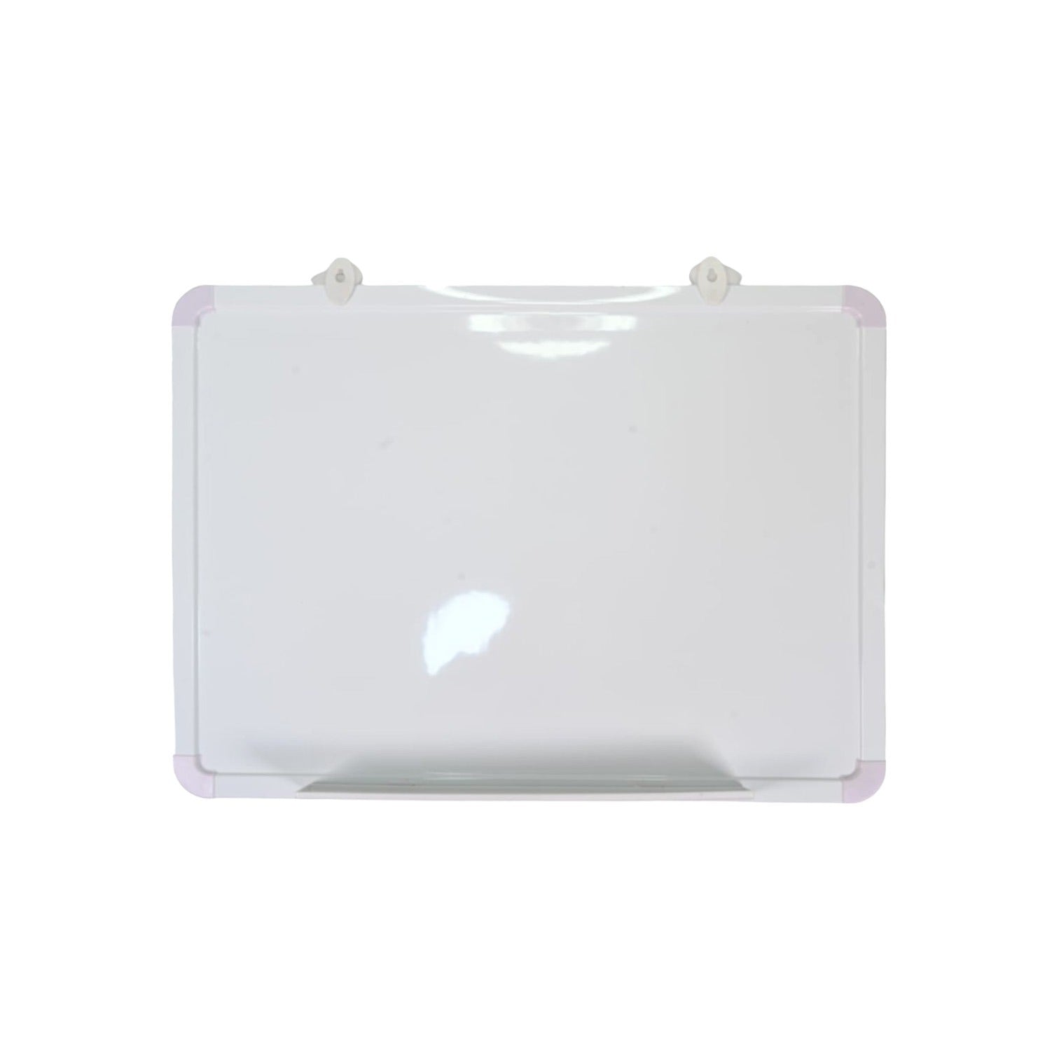 This magnetic whiteboard features a durable, smooth writing surface. Measuring 45×60 cm, it includes a convenient bottom tray for markers and erasers, and wall mounts for easy hanging.