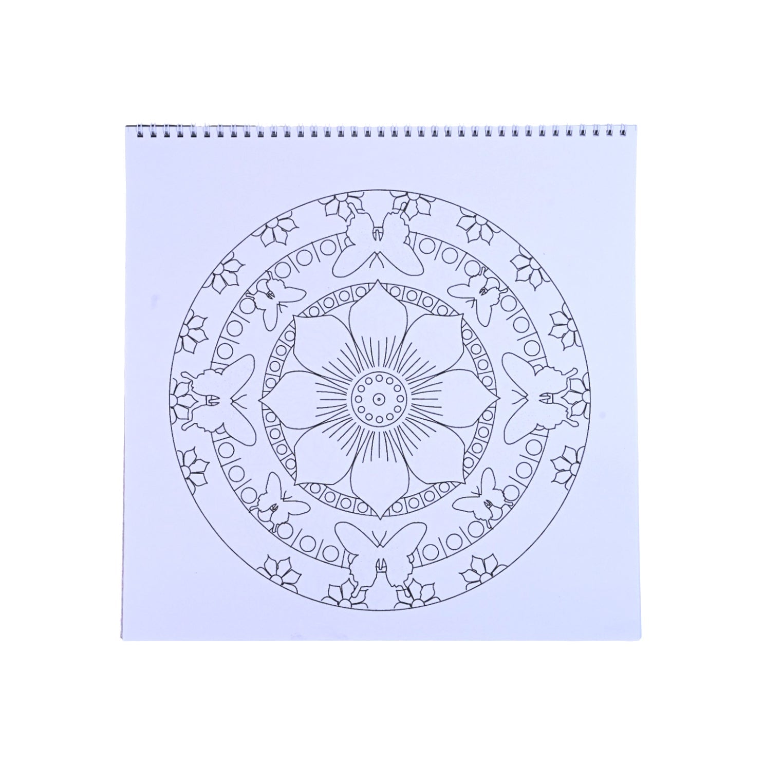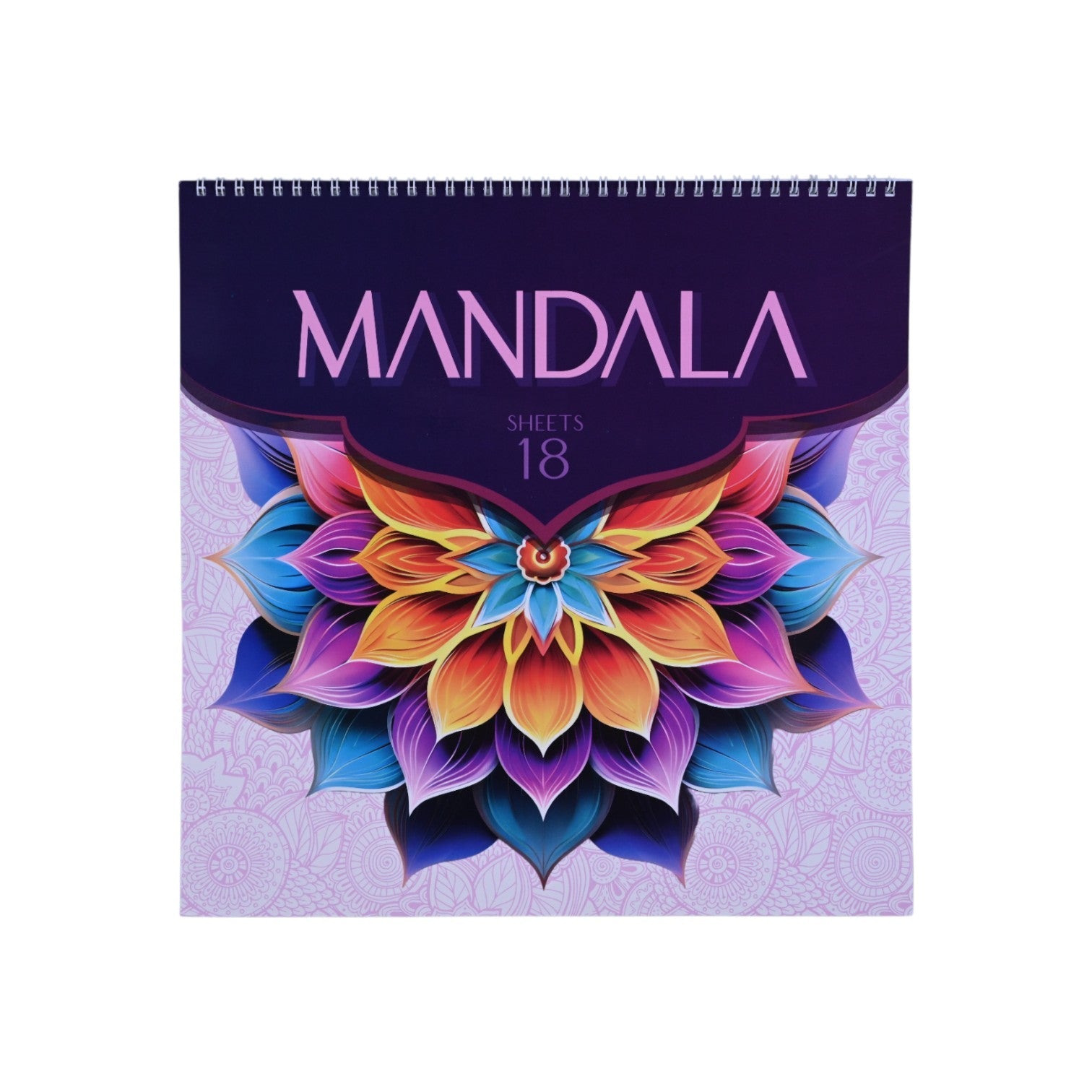 Large-format mandala pad with 18 sheets of intricate designs, ideal for stress relief.