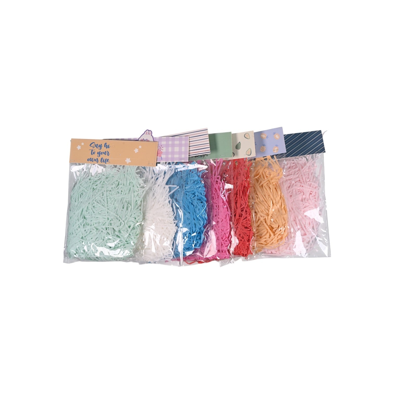 Perfect for lining gift boxes or decorating party favors. Each pack contains a vibrant bundle of shredded paper.