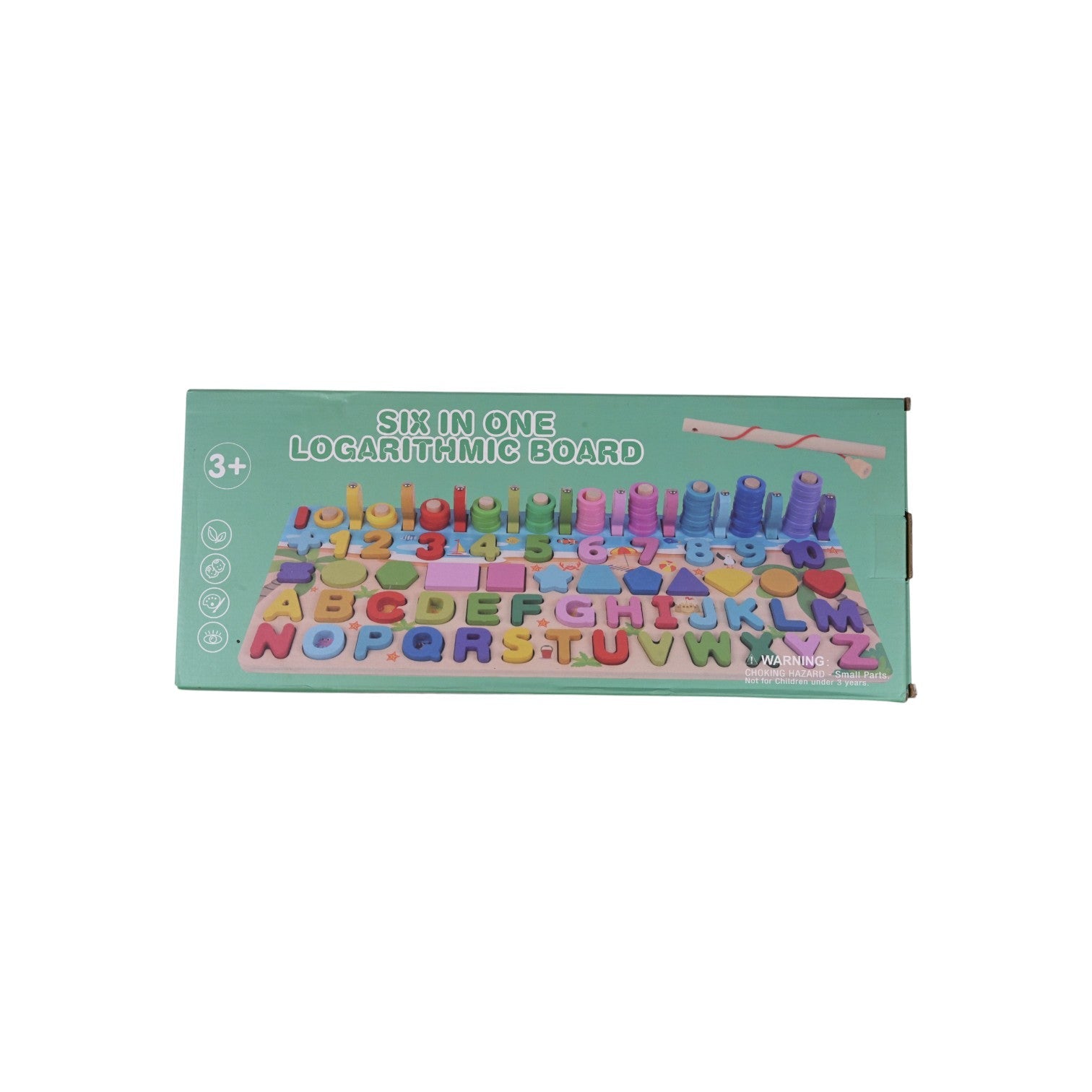 Perfect for children aged 3 and up, this educational board includes stacking rings, geometric shapes, number blocks, alphabet letters, and a fishing game.